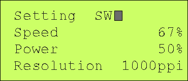 the Resolution for that pen as well as its Speed and Power setting.